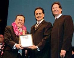 California State Senator Richard Alarcon honors Sifu Kong at the Martial Arts History Museum awards ceremony on October 14, 2006.